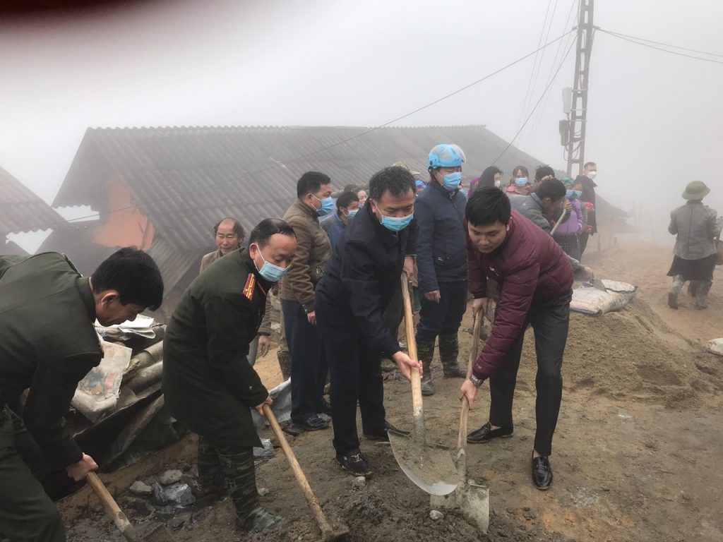 Đại diện Công ty cổ phần đầu tư CIC cùng bà con tham gia đổ bê tông tuyến đường nội thôn Hoàng Phì Chải.