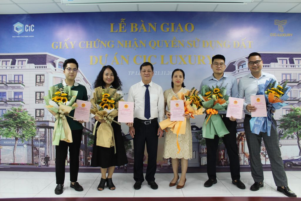 Đại diện Chủ đầu tư ông Nguyễn Minh Tuấn – chủ tịch HĐQT CIC Invest trao giấy chứng nhận quyền sử dụng đất tới chủ nhân các căn shophouse.